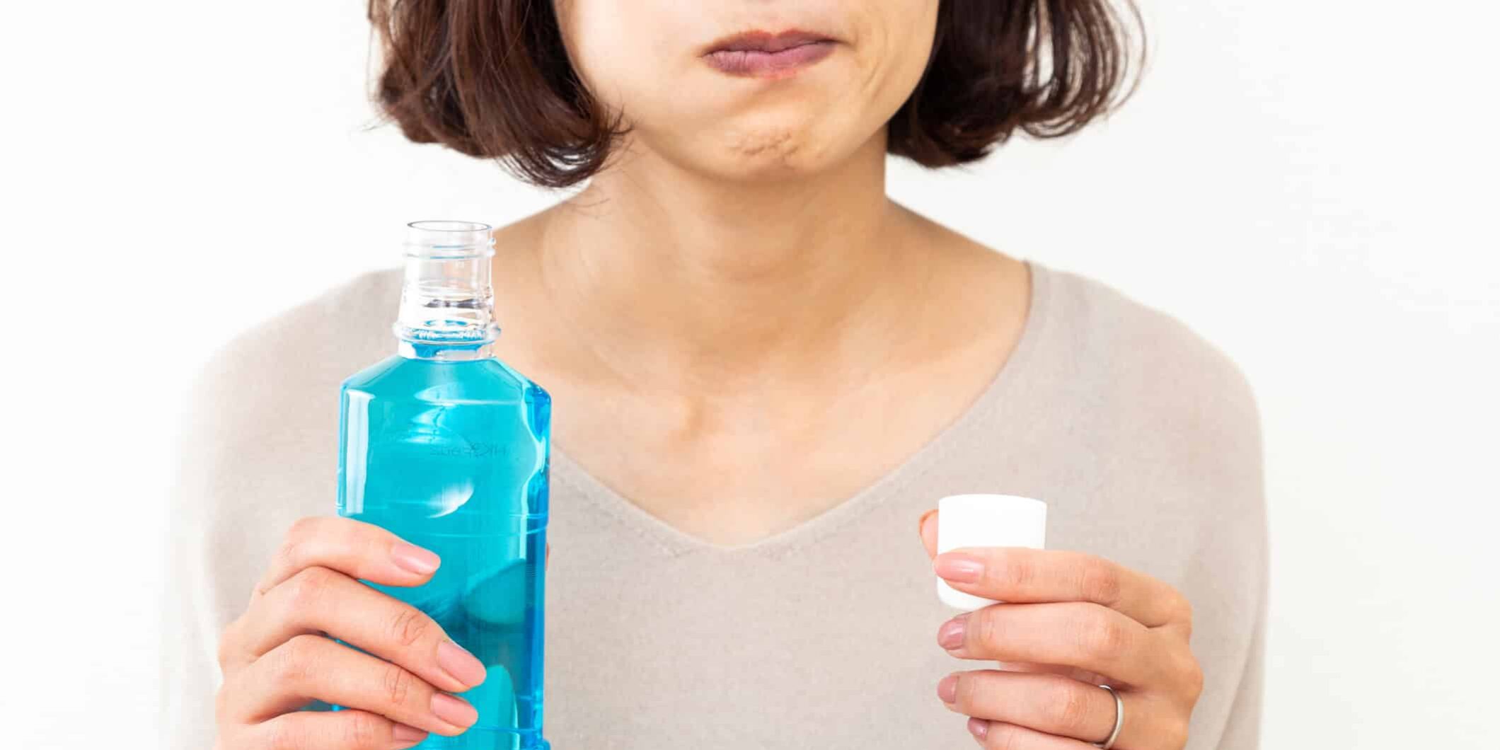 woman using mouthwash